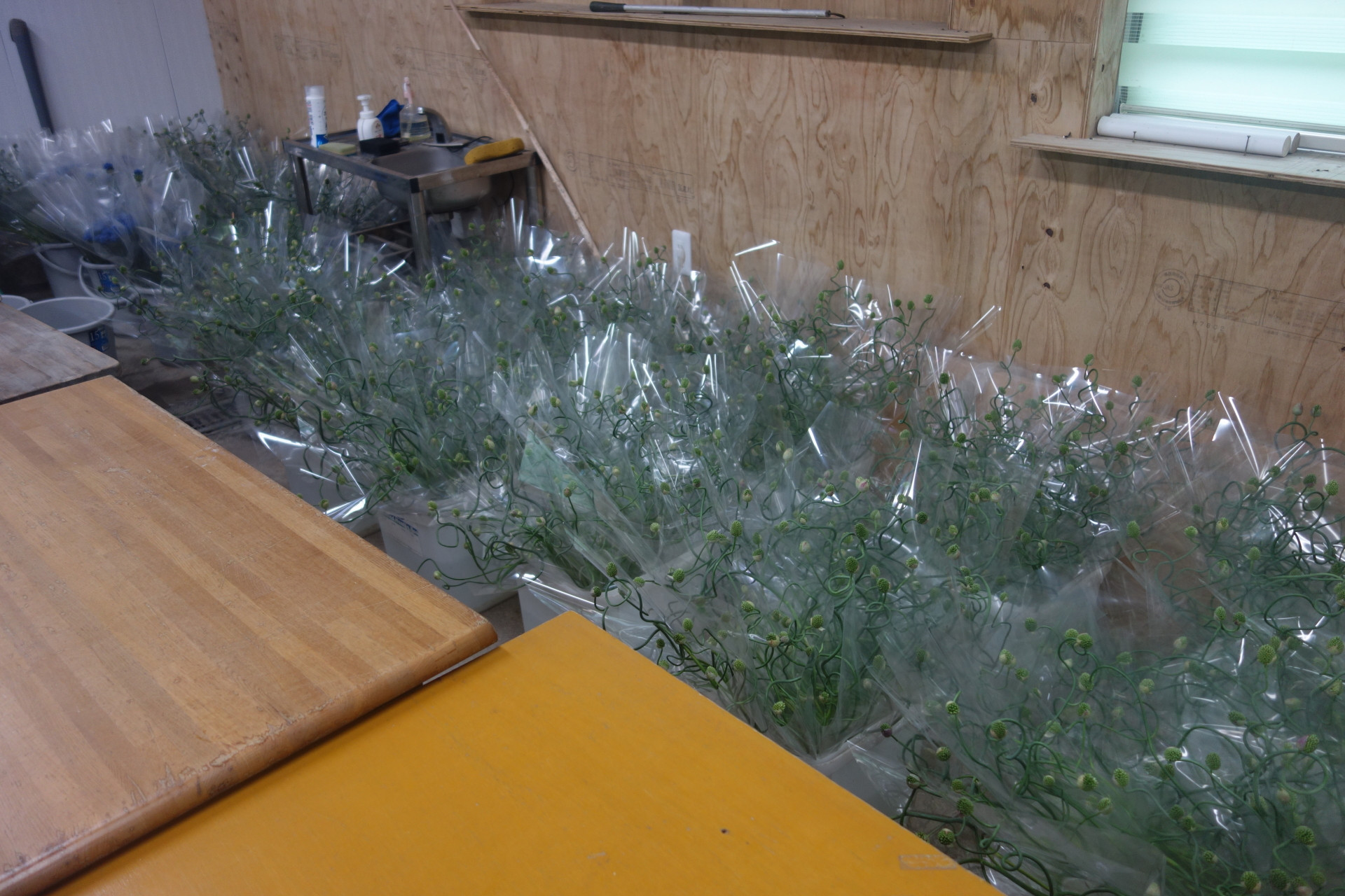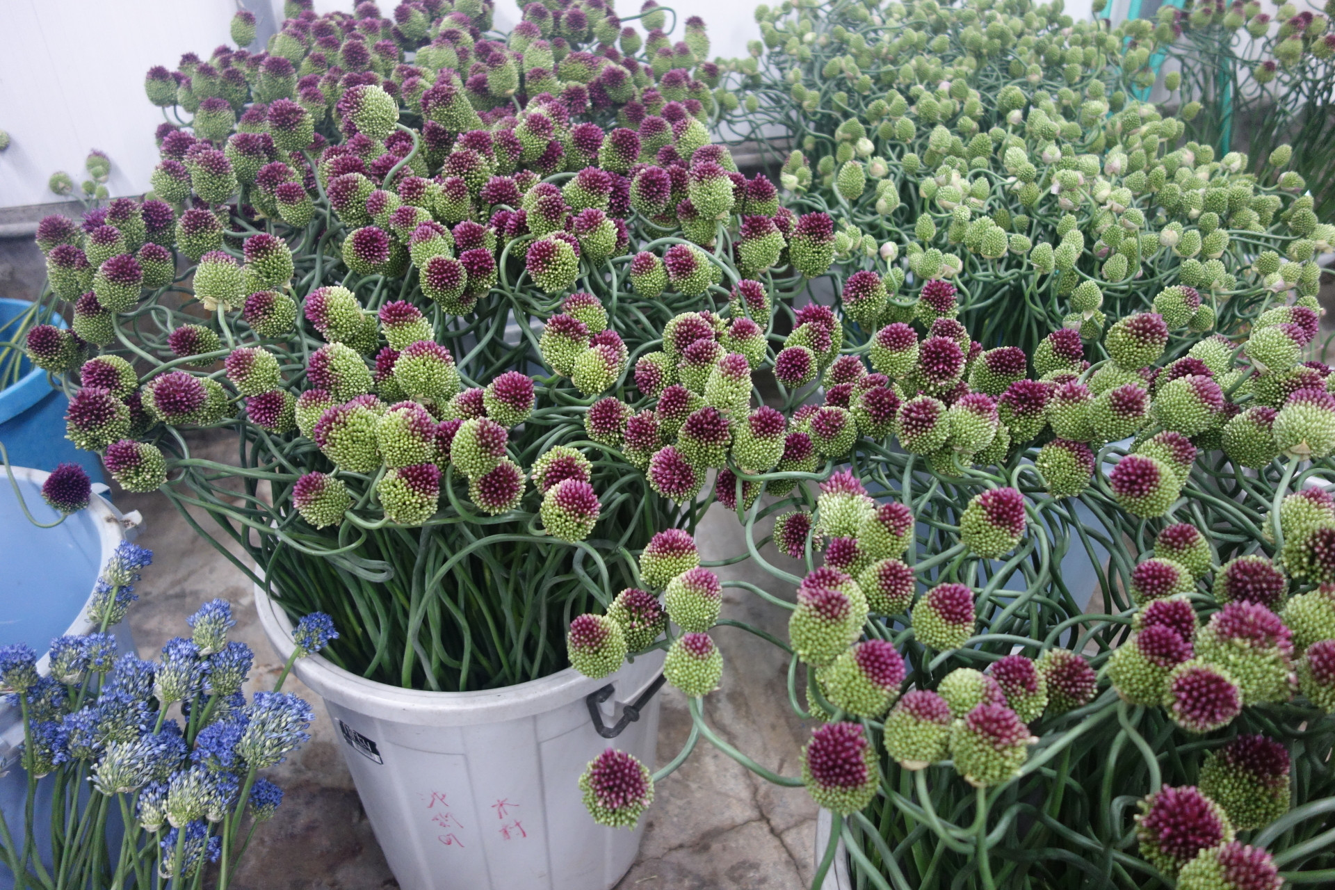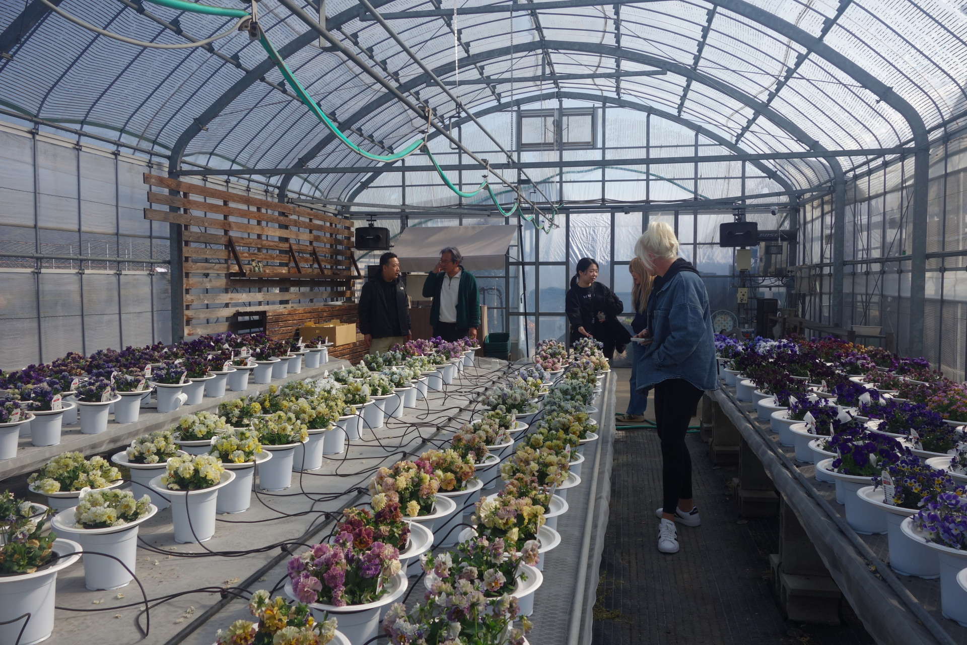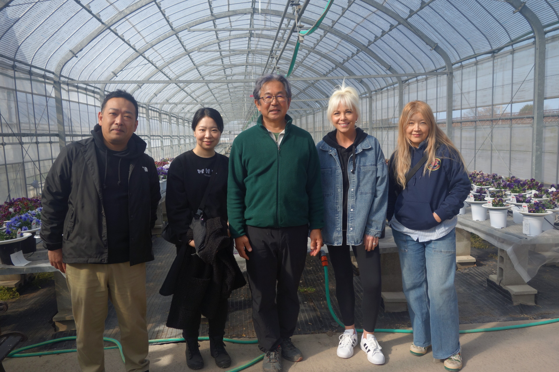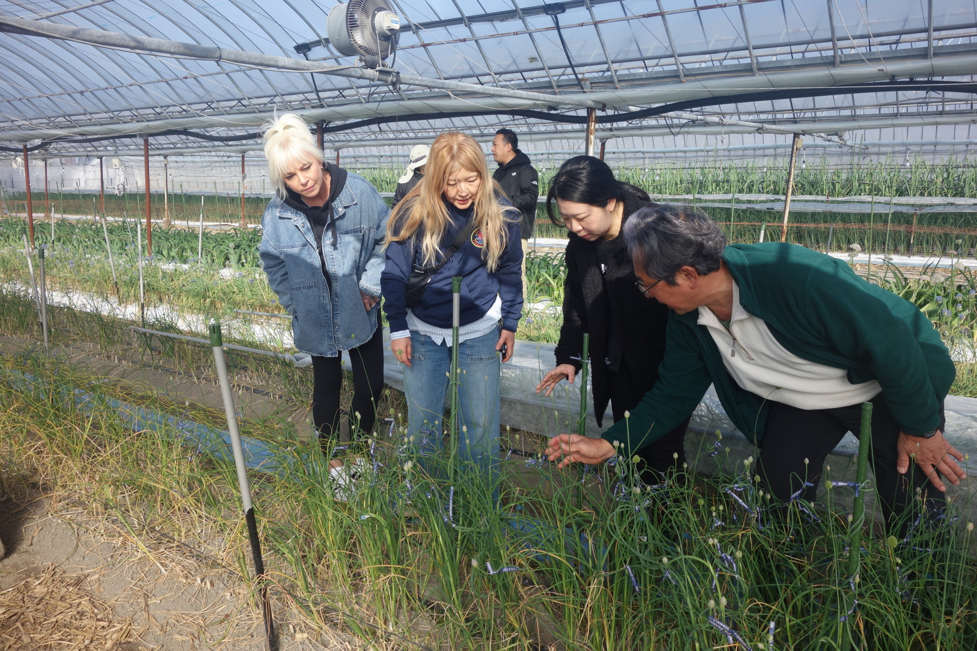 販売も長期にわたって低迷し、3月の需要期に一瞬良くなったかと思えば、また低迷。市場のバイイングパワーが確実に落ちてきております。多分農業界でもこの品目はダメだからこれに切り替える。もっと大胆に花から野菜と作物転換する人も出てくるでしょう。でも結論から言うと、移っても同じ今の品目で腰を据えて頑張るしかないと言いたい。「隣の芝は青く見える」のことわざの如く。ここでも競争している。移った先でももちろん競争がある。畑を変えればまた一から始めないといけない。写真はアメリカからのお客様。大阪のなにわ花市場さんが案内してくれました。花を手掛けて約30年穂になりますが、15年ほど前に国が後押しする形で、外国への輸出拡大の事業があり、当園のアリュームを持ち込んで提案して頂いたのが始まりです。そこからグロリオサやスイートピー等と一緒に行っていました。そして月日は流れ、今回の来園に繋がったわけです。アリュームを曲げるというのが当園の売りではあるのですが、途中「何やっているんだろう」「こんなことして無駄じゃないの」と何度思ったか分かりません。でも続けました。それはまだ自分の中に熱が残っていたからです。そのうち誰かが分かってくれるだろうと。その答えが、後にしか来ないという事も。可能性があるならばそれを磨いて、チャンスを待つ。しぶとく待つ。エリザベスさん有難うございました。私の中ではテイラー・スイフト以上に眩しくもありました。確実に言えることは、『お金を追うな、自分を確立し夢を追え』それがこの30年の答えの様な気がします。一生をかけて自分のブランディングをしていかないといけません。